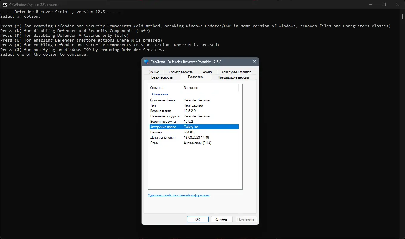 Небольшая и эффективная утилита для полного отключения Защитника Windows и связанных с ним компонентов системы. Программа позволяет быстро деактивировать антивирусные службы и функции безопасности, такие как SmartScreen, App Guard и VBS, без ручного вмешательства в реестр или групповые политики. Работает на всех актуальных версиях операционной системы, включая windows11, и поддерживает как стационарные, так и портативные конфигурации.