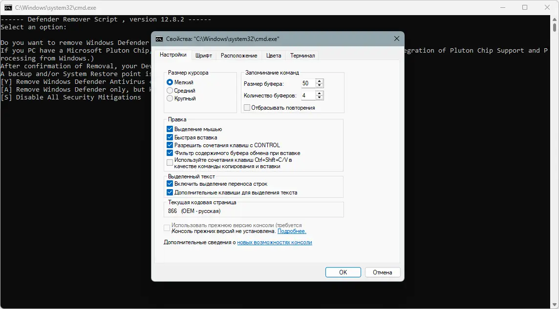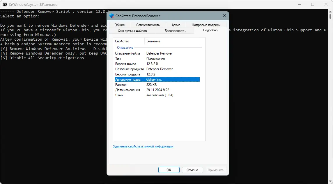 Defender Remover — это минималистичный инструмент, предназначенный для управления встроенными компонентами безопасности в операционных системах семейства windows. Утилита позволяет отключить Защитник Windows, включая приложение безопасности, SmartScreen, службы веб-угроз и виртуализации. Также деактивируются процессы, связанные с Microsoft Defender App Guard, VBS и UAC, что делает систему более гибкой для настройки.