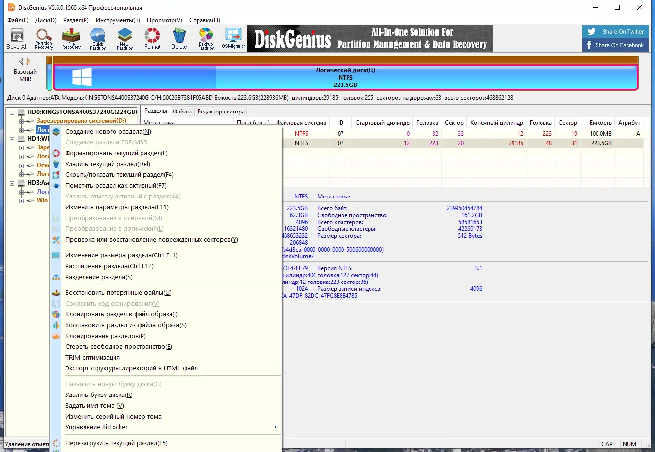 DiskGenius предоставляет комплексный подход к управлению дисками, позволяя эффективно работать с физическими и виртуальными носителями. Утилита поддерживает MBR и GPT таблицы разделов, что делает её совместимой с современными и устаревшими системами. Программа способна работать с различными файловыми системами, включая FAT, NTFS, EXT2/EXT3, а также поддерживает LVM2, что расширяет её применение в гибридных средах.