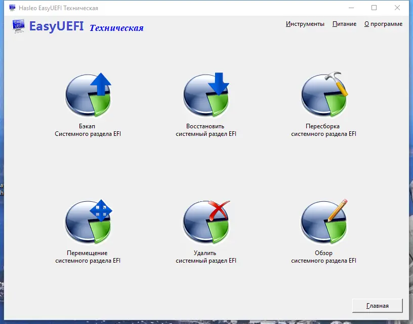 EasyUEFI — это специализированная системная утилита, предназначенная для управления параметрами загрузки в системах с интерфейсом EFI/UEFI. Программа позволяет редактировать загрузочное меню Windows, настраивать порядок запуска операционных систем, создавать резервные копии загрузчика и восстанавливать его при необходимости. Инструмент особенно полезен при работе с многозагрузочными конфигурациями и в процессе восстановления системы после сбоев.