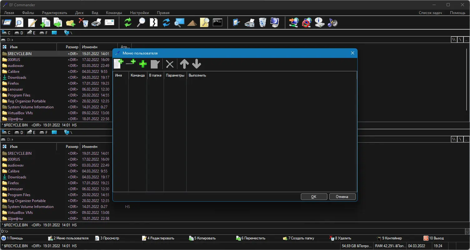EF Commander демонстрирует высокую эффективность при выполнении повседневных задач по управлению файлами. Его многопоточная архитектура позволяет одновременно запускать множество операций, не замедляя работу системы. Программа поддерживает модули для записи CD и DVD при наличии Nero Burning ROM, а также функции проверки контрольных сумм в форматах SFV, MD5 и SHA1, что особенно полезно при работе с большими объёмами данных. Встроенная поддержка FTP-соединений упрощает доступ к удалённым серверам без запуска дополнительных клиентов.
