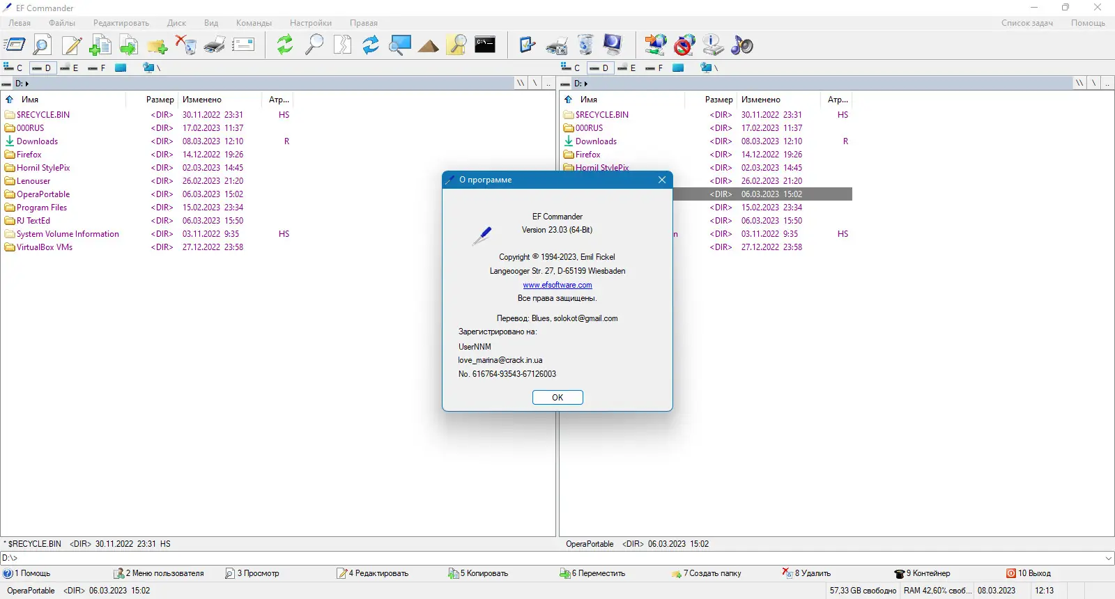 EF Commander доступен в установочной и портативной версии, что позволяет использовать его как на постоянной основе, так и с флеш-накопителей. Программа поддерживает все актуальные версии Windows и поставляется с полной локализацией на русский язык. Портативная версия не требует инсталляции и сохраняет настройки между сеансами. Управление лицензией осуществляется через встроенный генератор ключей, совместимый с основными версиями приложения.
