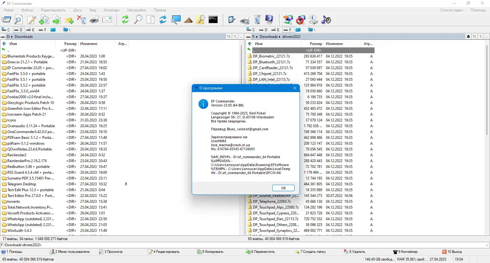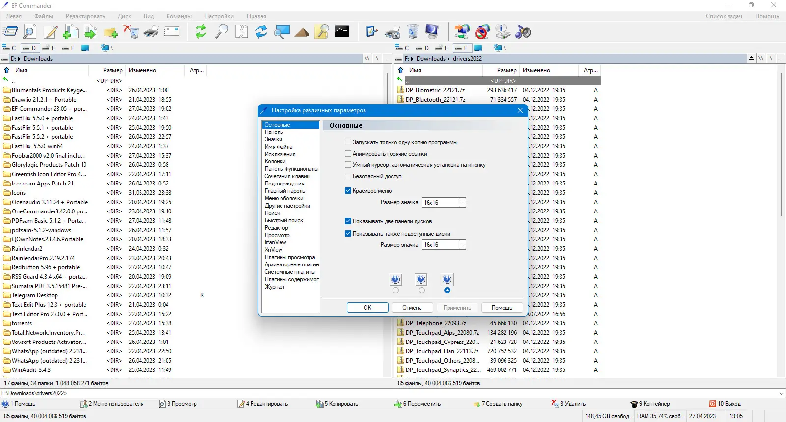 EF Commander совместим с плагинами Total Commander, что значительно расширяет его функциональные возможности и позволяет интегрировать сторонние модули для работы с сетевыми ресурсами, облачными хранилищами и специализированными форматами.