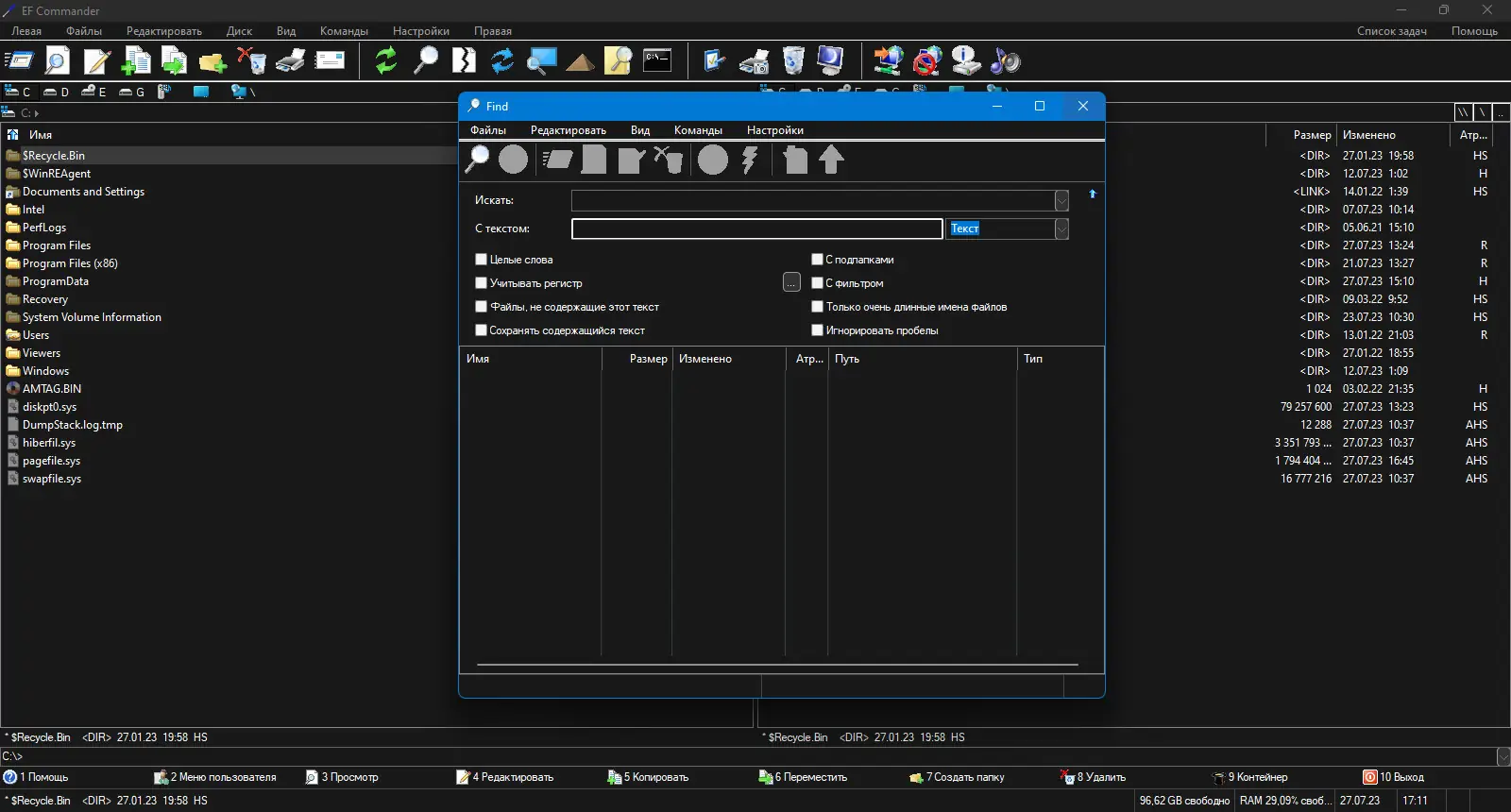 EF Commander — это мощный двухпанельный файловый менеджер, разработанный для эффективного управления файлами и папками на компьютере. Программа совмещает в себе функциональность множества утилит, обеспечивая удобство при работе с архивами, мультимедиа, сетевыми подключениями и системными процессами. Благодаря оптимизированному коду и минимальным требованиям к ресурсам, она одинаково хорошо работает как на старых, так и на современных конфигурациях.