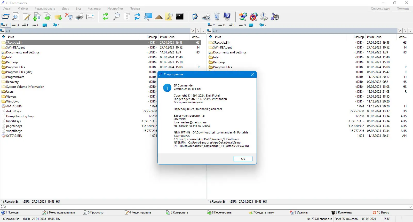 EF Commander представляет собой мощный файловый менеджер, разработанный для эффективного управления данными на локальных и сетевых дисках. Интерфейс построен по классической двухпанельной схеме, что обеспечивает быстрый обзор и перемещение файлов между каталогами. Программа оптимизирована под работу с большими объёмами информации и поддерживает параллельные операции, позволяя копировать, перемещать и удалять файлы в фоновом режиме без блокировки интерфейса.