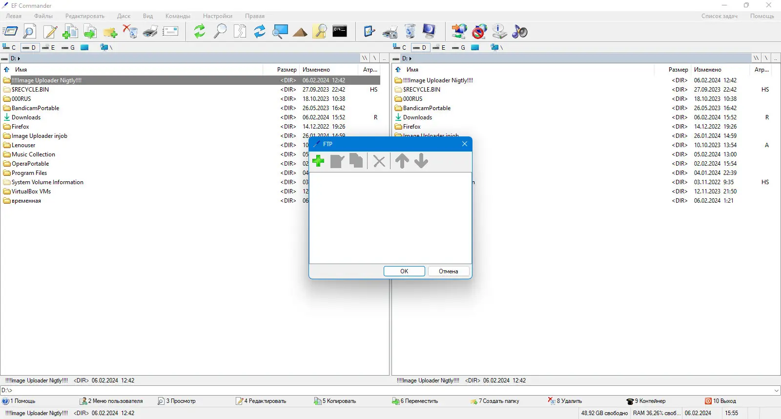 Пользоваться EF Commander просто благодаря интуитивно понятному интерфейсу и продуманной структуре меню. После запуска программы пользователь видит две панели, каждая из которых может быть настроена на отображение нужного каталога. Навигация осуществляется с помощью мыши или клавиатурных комбинаций, включая поддержку горячих клавиш для быстрого доступа к часто используемым функциям. Для выполнения операций с файлами — копирования, перемещения, удаления — достаточно выделить объекты и использовать контекстное меню или панель инструментов. Встроенные утилиты, такие как текстовый редактор, HEX-редактор и инструмент проверки контрольных сумм, доступны напрямую из интерфейса без необходимости переключения между приложениями. Поддержка протоколов FTP позволяет управлять удалёнными серверами так же легко, как и локальными папками.
