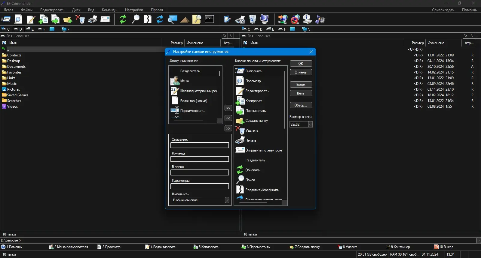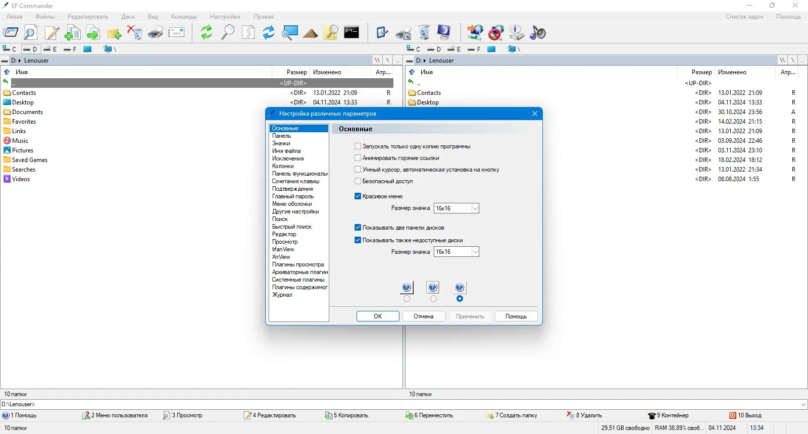 EF Commander совместим с плагинами Total Commander и поддерживает внешние модули форматов WLX, WCX, WFX, что значительно расширяет его функциональность.