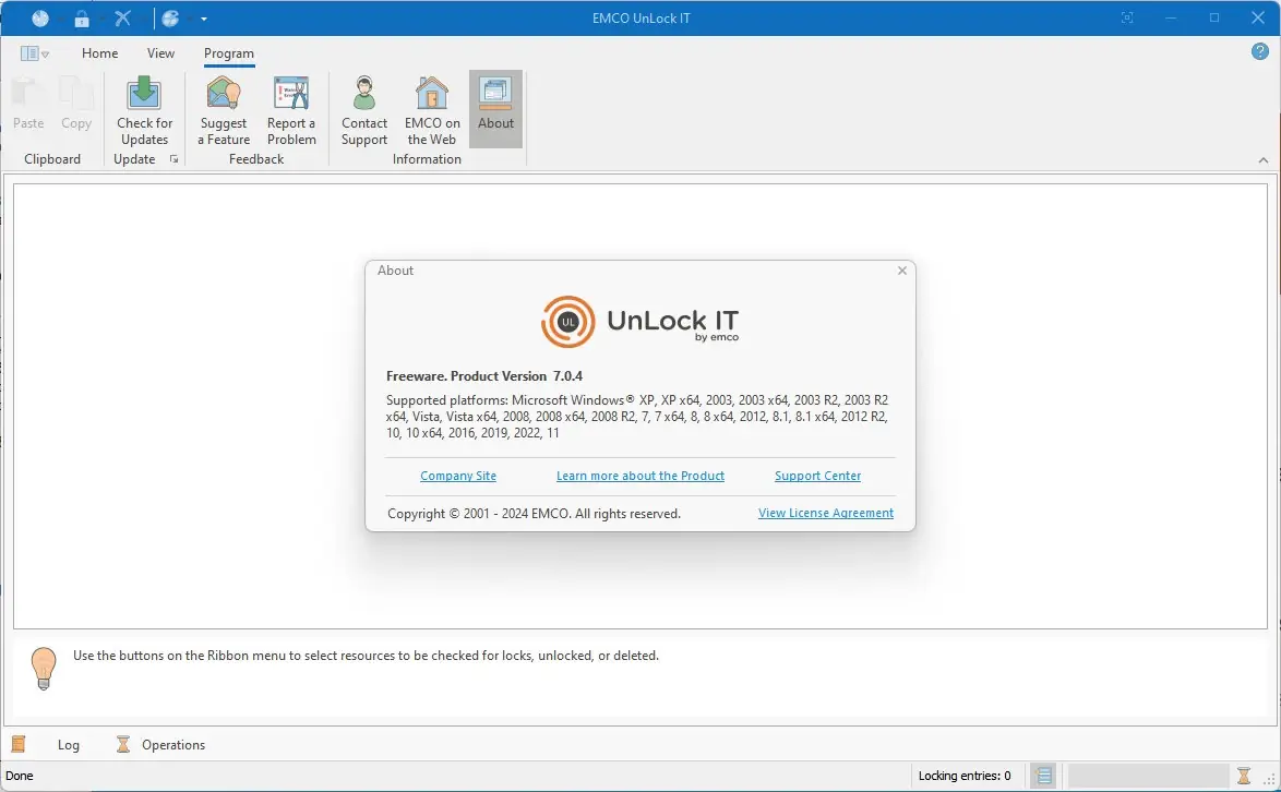 EMCO UnLock IT — это бесплатная системная утилита, предназначенная для разблокировки файлов и папок, заблокированных процессами операционной системы или приложениями. Программа помогает решить проблему отказа в доступе к ресурсам, позволяя быстро определить, какой процесс удерживает файл, и освободить его. Поддерживает работу с шифрованными файлами, DLL-библиотеками и защищёнными процессами, включая вредоносные программы.