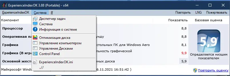 - ExperienceIndexOK поддерживает работу с встроенными компонентами Windows, что позволяет запускать дополнительные диагностические инструменты по мере необходимости.