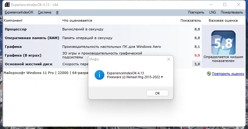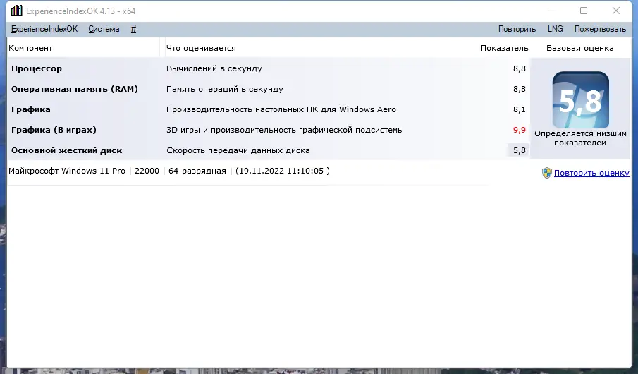- Результаты отображаются в виде базовых и суб-индексов, как в классическом Windows Experience Index