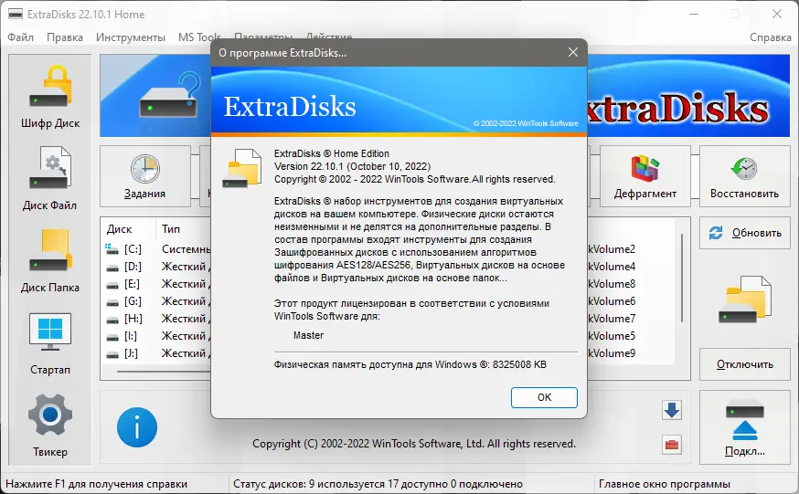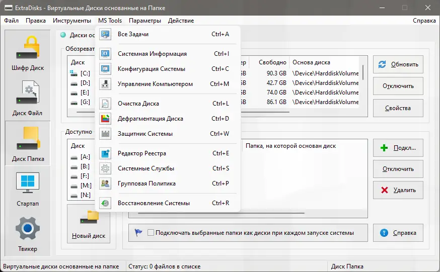 ExtraDisks — это набор системных инструментов для создания и управления виртуальными дисками, включая зашифрованные тома, диски на основе файлов и каталогов, а также дополнительные утилиты для настройки автозагрузки и параметров операционной системы. Программа не требует установки и позволяет организовать защищённое хранение данных без изменения структуры жёстких дисков. Решение подходит для пользователей, которым необходимо быстро настроить изолированные дисковые пространства с различными уровнями доступа.
