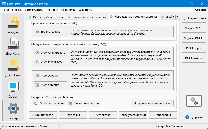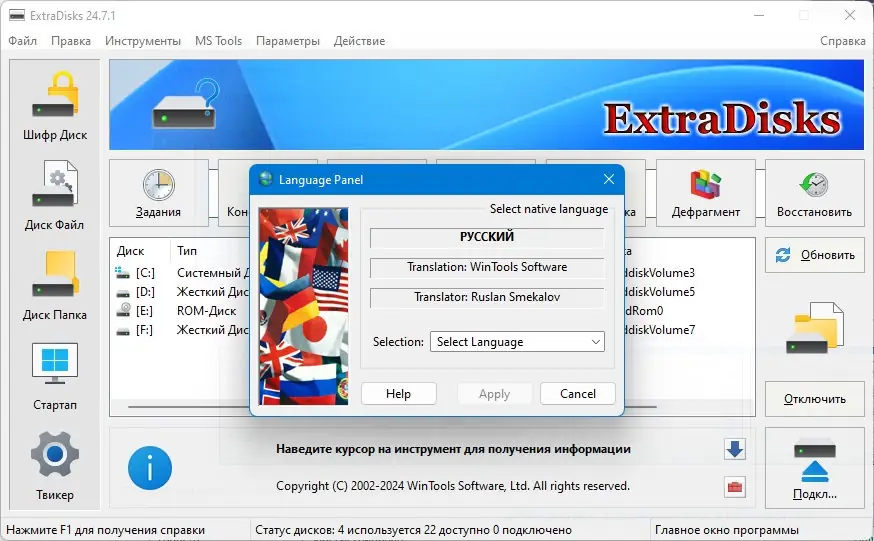 ExtraDisks — это многофункциональный набор инструментов для создания и управления виртуальными дисками на основе файлов, папок и зашифрованных контейнеров. Программа позволяет организовать данные без изменения структуры физических дисков, обеспечивая безопасность, удобство и гибкость в работе с системными ресурсами. Все функции объединены в едином интерфейсе, подходящем как для опытных пользователей, так и для новичков.