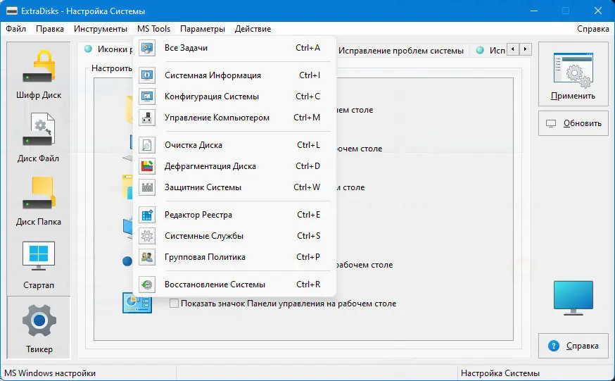 Одним из главных преимуществ ExtraDisks является его модульная архитектура, объединяющая несколько полезных утилит в единую среду. Интегрированный диспетчер автозагрузки позволяет контролировать запуск сторонних приложений, что способствует ускорению загрузки системы и снижению нагрузки на ресурсы. Инструмент «Настройка системы» предоставляет доступ к скрытым параметрам Windows, связанным с файловой системой, системным лотком и другими компонентами, которые недоступны через стандартные средства ОС. Поддержка многопоточности и оптимизация кода обеспечивают высокую производительность даже на слабых конфигурациях.