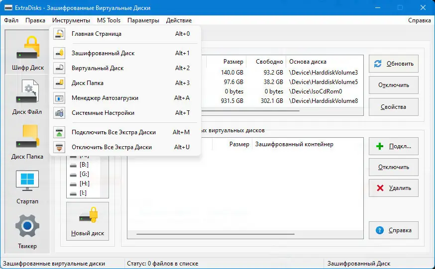 ExtraDisks представляет собой комплексное решение для управления виртуальными дисками и системными настройками в среде Windows. Программа позволяет создавать зашифрованные диски с использованием современных алгоритмов AES128 и AES256, что гарантирует высокий уровень защиты конфиденциальной информации. Данные шифруются в режиме реального времени, исключая возможность несанкционированного доступа даже при физическом извлечении носителя. Это делает инструмент особенно полезным для пользователей, работающих с персональными или корпоративными данными.