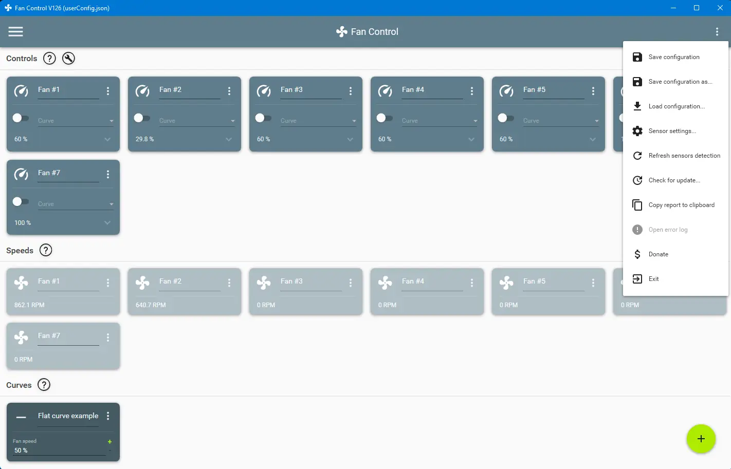 - Возможность создания вентиляторных кривых — зависимостей оборотов от температуры.