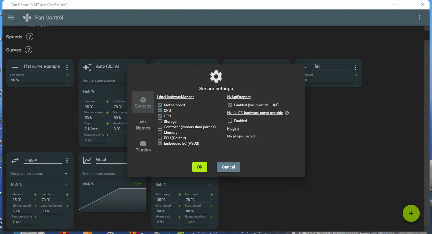 - Возможность создания пользовательских вентиляторных кривых для точного контроля оборотов.