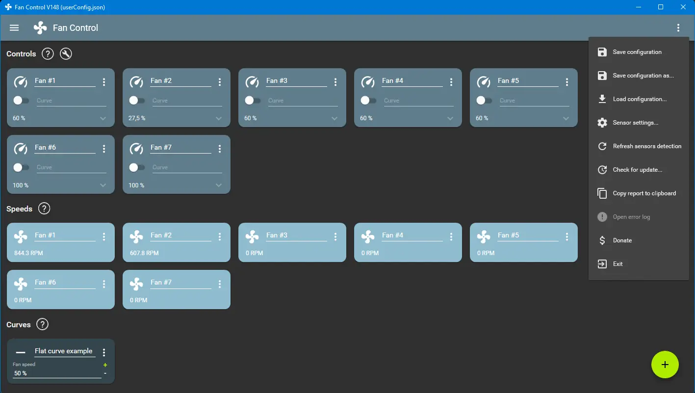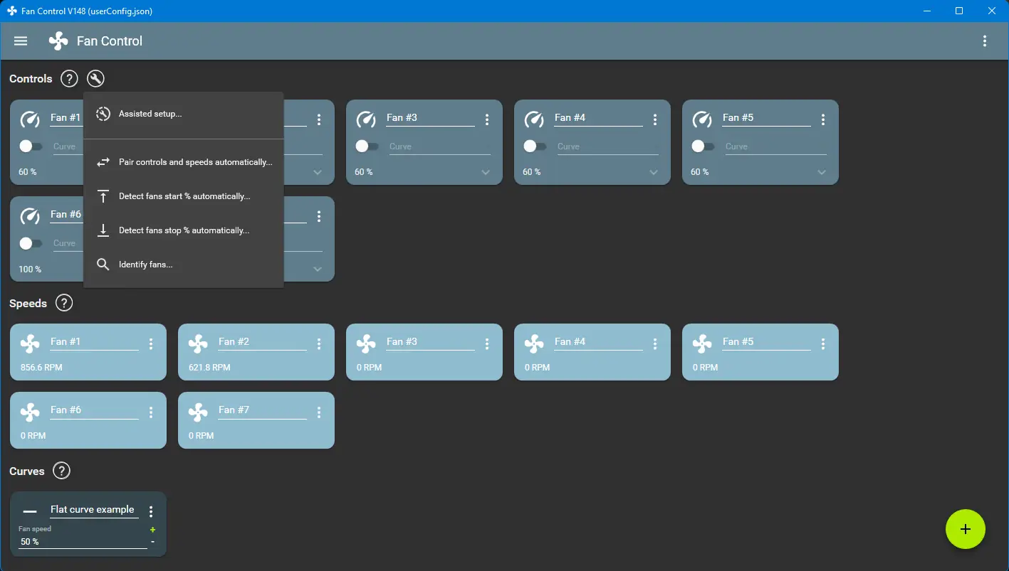 После запуска приложение автоматически сканирует систему и обнаруживает доступные датчики температуры и контроллеры вентиляторов. С помощью встроенного мастера настройки можно быстро привязать каждый кулер к нужному датчику и задать желаемую кривую оборотов. Пользователь может сохранить текущую конфигурацию как профиль и переключаться между ними в зависимости от нагрузки на систему. Для нетиповых датчиков предусмотрена возможность ручного добавления через файловую систему. Настройки применяются в реальном времени, а изменения отображаются на графиках и индикаторах.