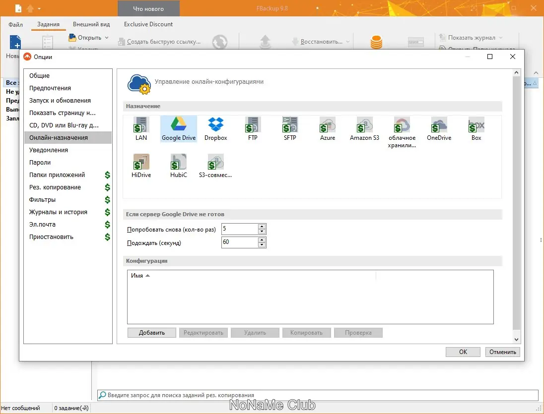 - Наличие мастеров настройки резервирования и восстановления, упрощающих взаимодействие с программой