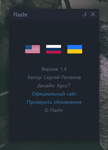 Программа доступна для бесплатного использования и распространяется в компактном установочном файле размером менее 700 килобайт. Процесс установки не включает навязчивых предложений или дополнительного ПО. Все хэш-суммы публикуются официально, что позволяет проверить подлинность скачанного файла. Flashr регулярно обновляется, а каждая новая версия приносит улучшения в стабильность и удобство интерфейса. Программу можно скачать на странице разработчика с гарантией отсутствия сторонних вмешательств в дистрибутив.