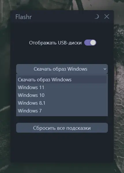 Flashr — это компактная утилита для записи образов операционной системы Windows на USB-накопитель с возможностью загрузки официальных ISO-файлов напрямую с серверов Microsoft. Программа ориентирована на простоту использования и не требует глубоких технических знаний, что делает её удобной как для новичков, так и для опытных пользователей. Интерфейс минималистичен, а процесс подготовки загрузочной флешки автоматизирован на всех этапах.