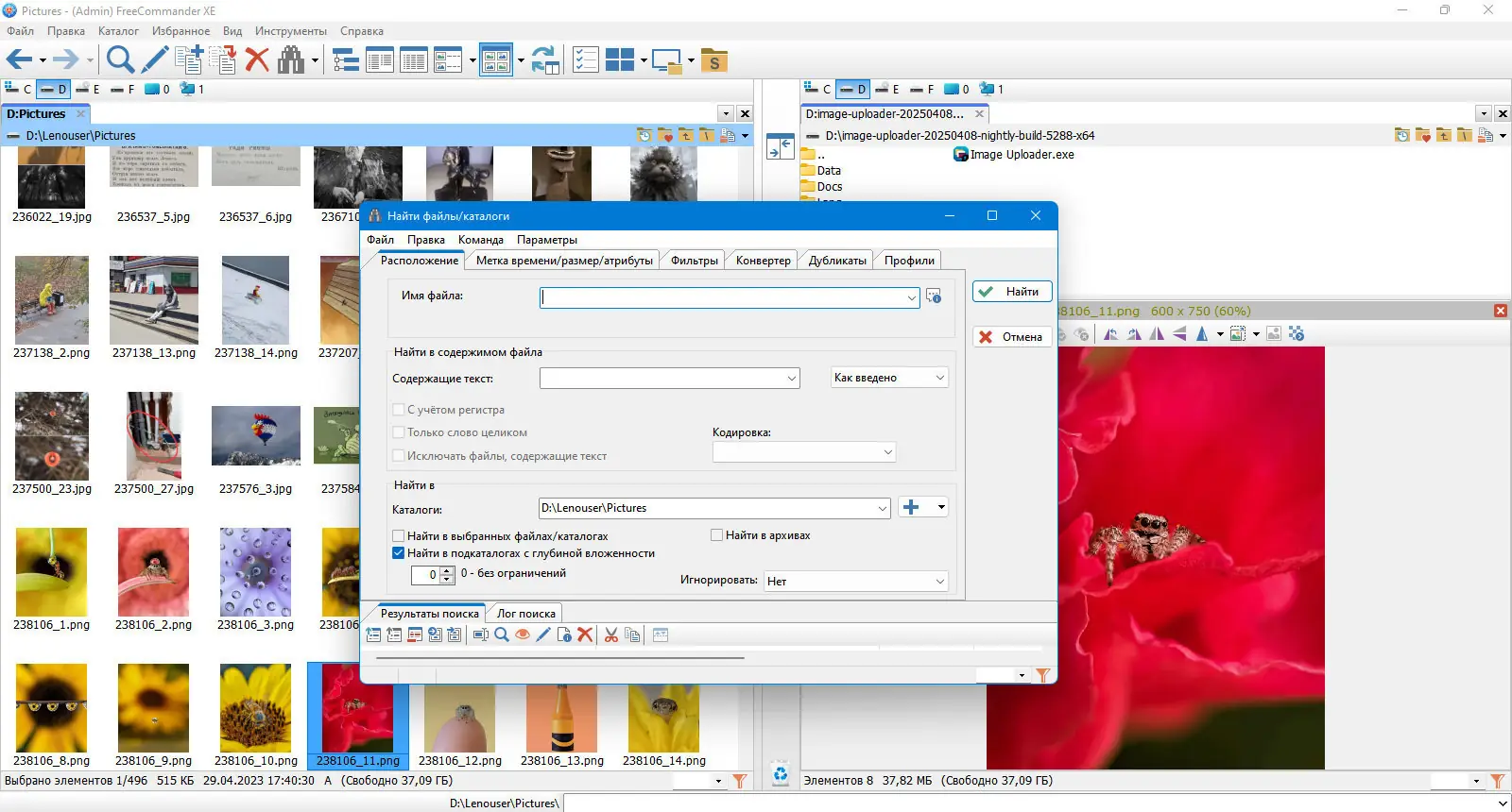 Использование FreeCommander начинается с освоения двухпанельного интерфейса, где каждая панель независимо отображает выбранную директорию. Операции копирования и перемещения выполняются через перетаскивание или горячие клавиши, при этом можно выбрать, какой механизм использовать — собственный движок программы или сторонний инструмент, например, TeraCopy. Поиск файлов поддерживает фильтры, включая регулярные выражения, и позволяет искать содержимое даже внутри архивов. Для массовой обработки файлов доступен инструмент группового переименования, а для анализа — вычисление размера папок и проверка контрольных сумм по алгоритму MD5.