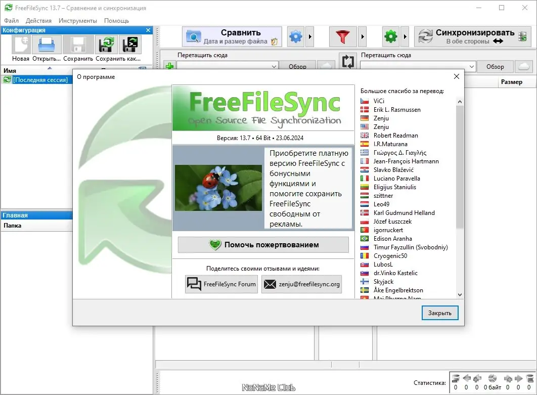 FreeFileSync — это бесплатная утилита для синхронизации и резервного копирования данных между папками на локальных дисках, внешних носителях и сетевых хранилищах. Программа поддерживает точное сравнение файлов по содержимому, размеру и дате изменения, обеспечивая надежность копирования. Интерфейс интуитивно понятен, а функционал охватывает широкий спектр задач по управлению файлами.