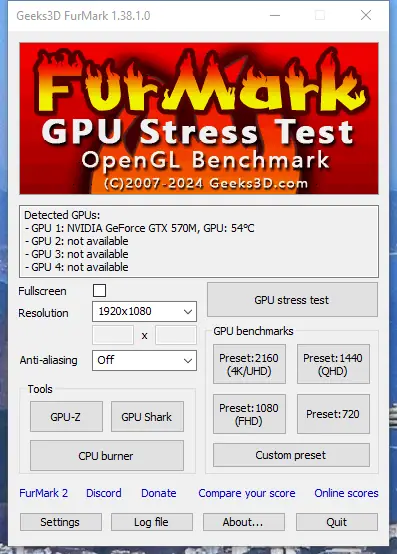 FurMark — это специализированная утилита, разработанная для диагностики и нагрузочного тестирования видеокарт. Основная функция программы — создание экстремальной нагрузки на графический процессор посредством рендеринга сложных 3d-сцен с активным использованием шейдеров. Это позволяет максимально быстро выявить возможные проблемы с охлаждением, питанием или стабильностью разгона. Программа поддерживает настройку разрешения экрана, выбор между оконным и полноэкранным режимом, а также регулировку уровня сглаживания для более точной настройки интенсивности нагрузки.