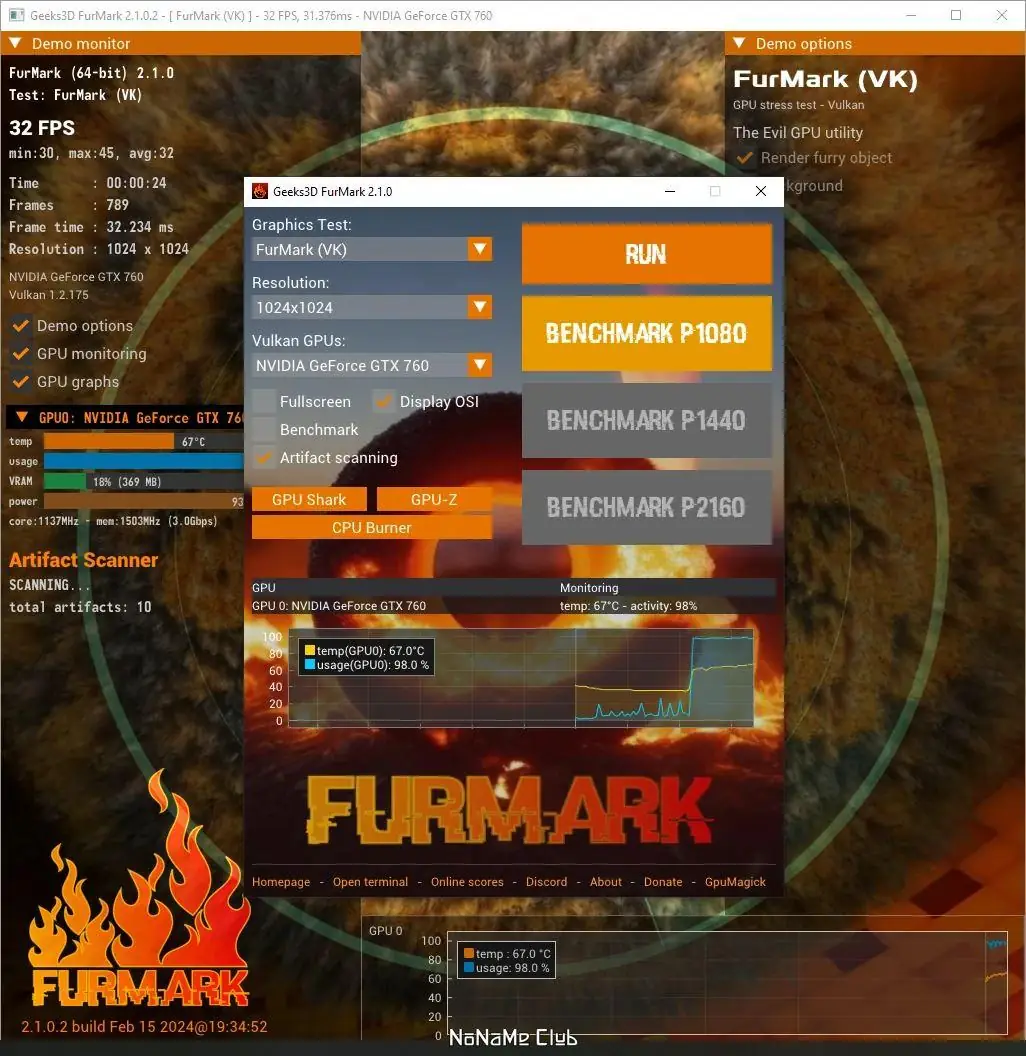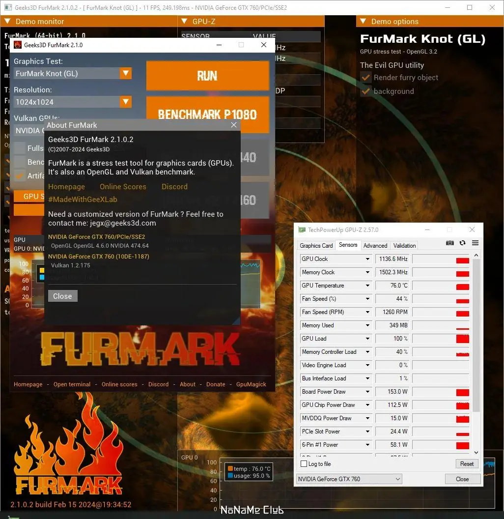 Программа FurMark 2 — это мощный инструмент для стресс теста видеокарты, разработанный на основе современных графических API. Она позволяет проводить интенсивные испытания GPU с помощью 3d-нагрузки, имитируя экстремальные условия работы. Подходит как для тестирования стабильности после разгона, так и для проверки эффективности системы охлаждения.