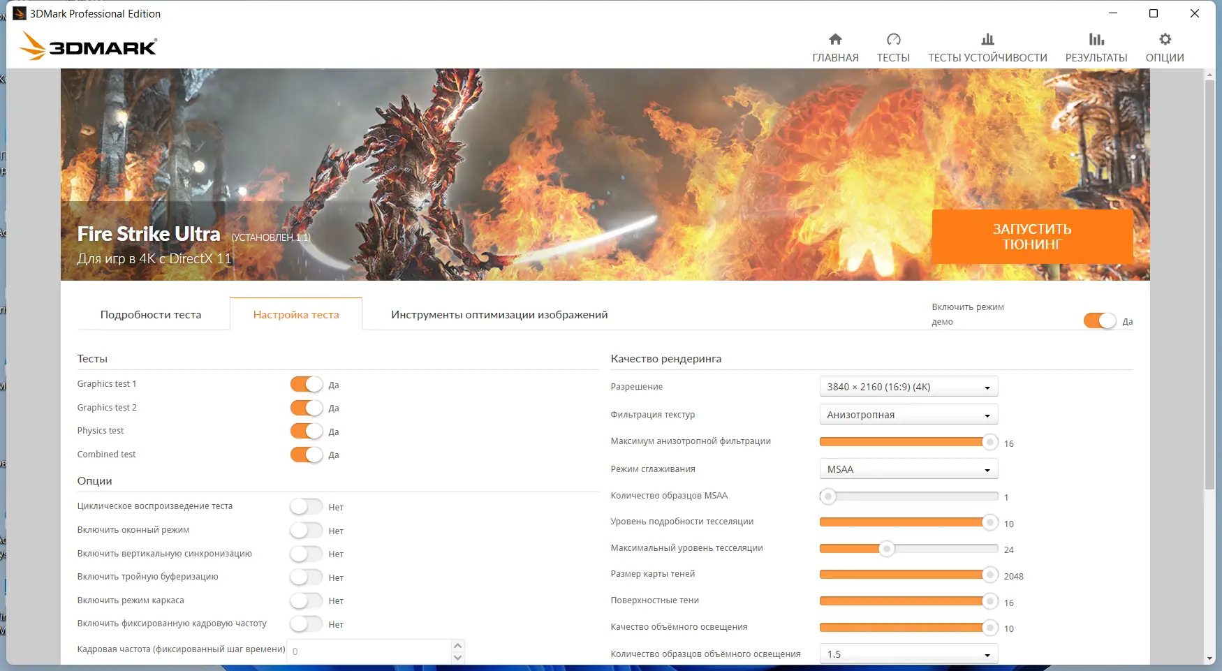 - Поддержка тестов в разрешениях 2K, 4K и даже 8K позволяет оценить производительность на современных дисплеях.