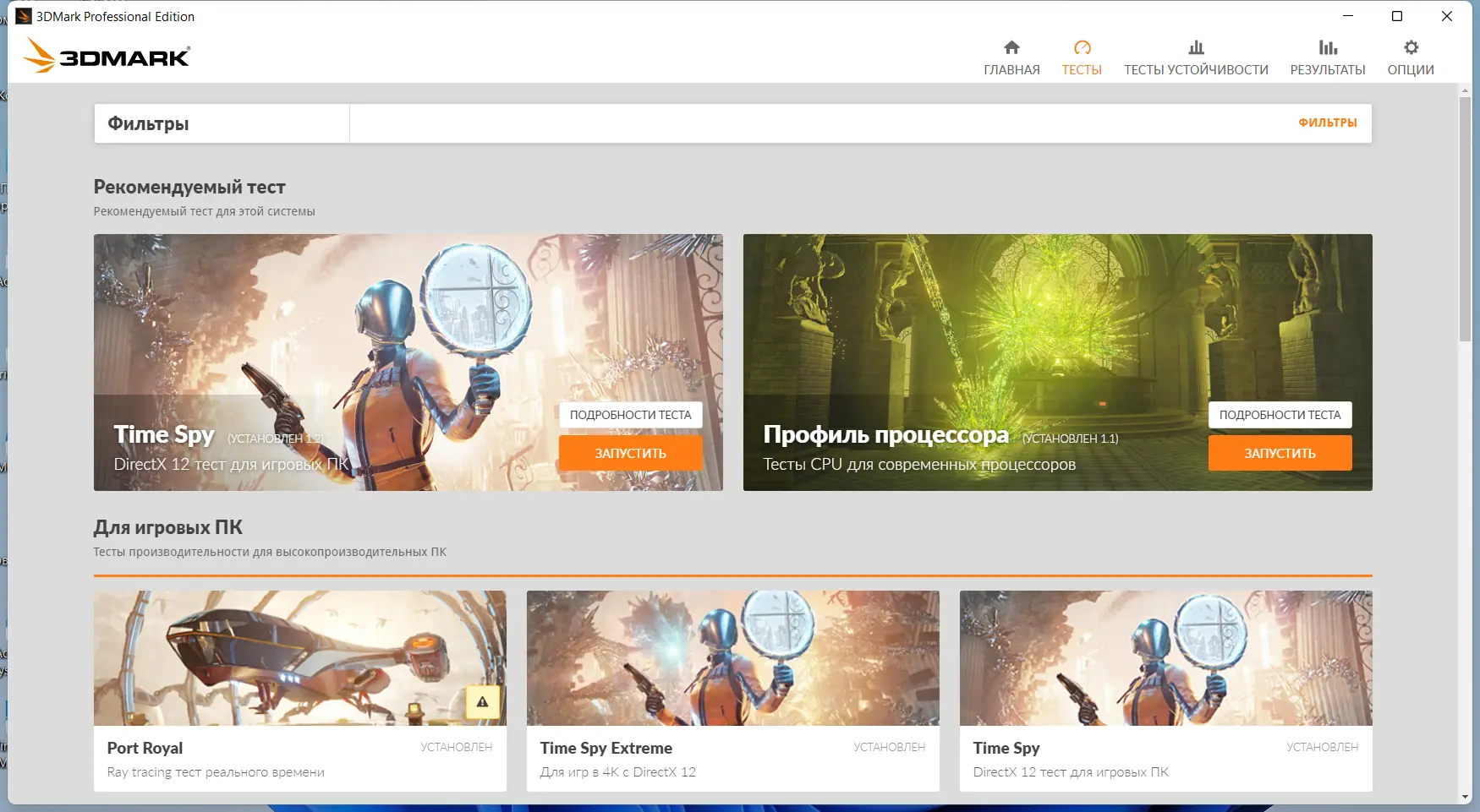 - Предусмотрены специализированные тесты под разные поколения графических API, включая DirectX 12, DirectX 11 и Vulkan.
