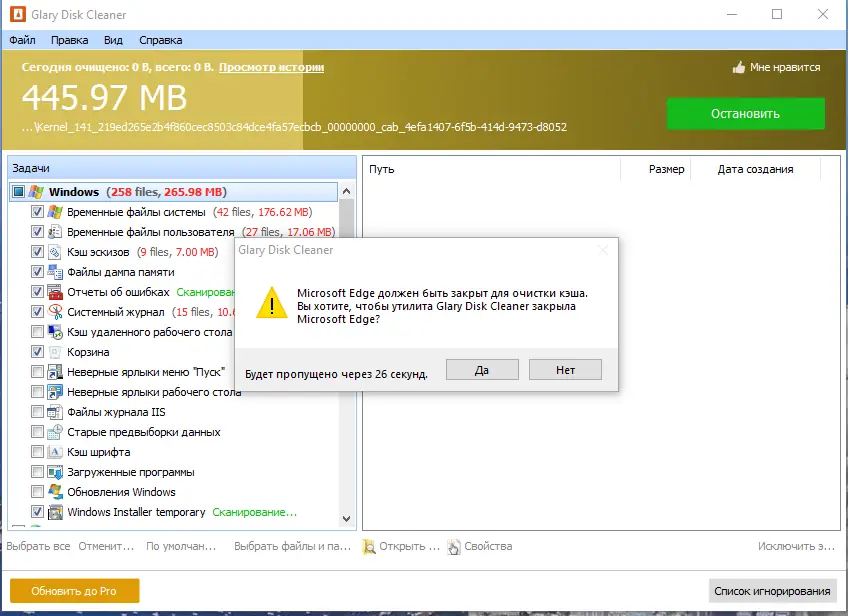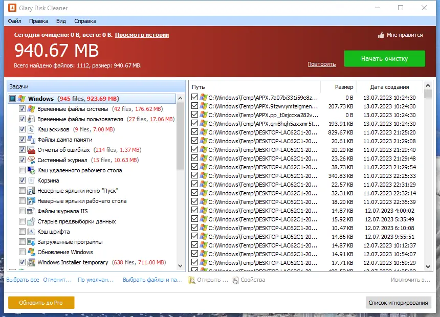- Быстрое и точное сканирование всех типов временных файлов