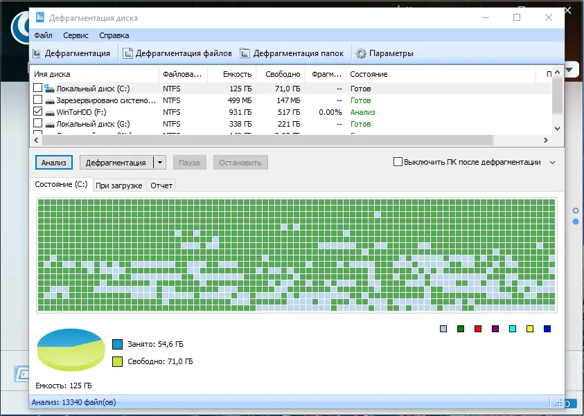 - Встроенный анализатор диска помогает визуализировать распределение файлов и быстро находить крупные или избыточные данные, занимающие место на жёстком диске.