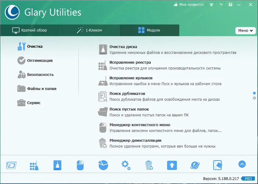 Glary Utilities сочетает в себе простоту интерфейса и высокую эффективность при решении широкого спектра системных задач.