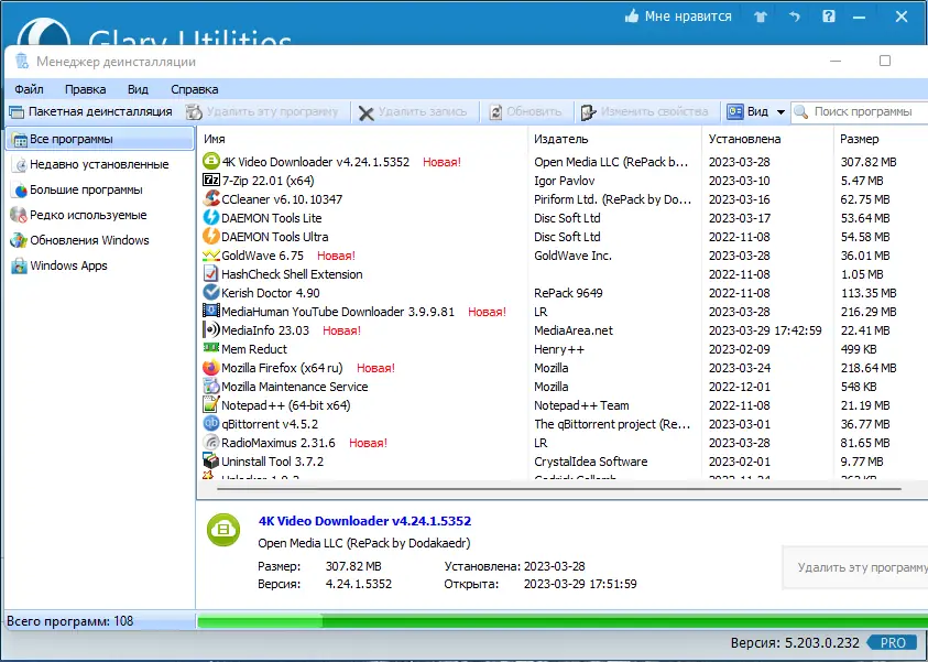 - Полное удаление ненужных приложений с очисткой остаточных файлов и записей реестра.