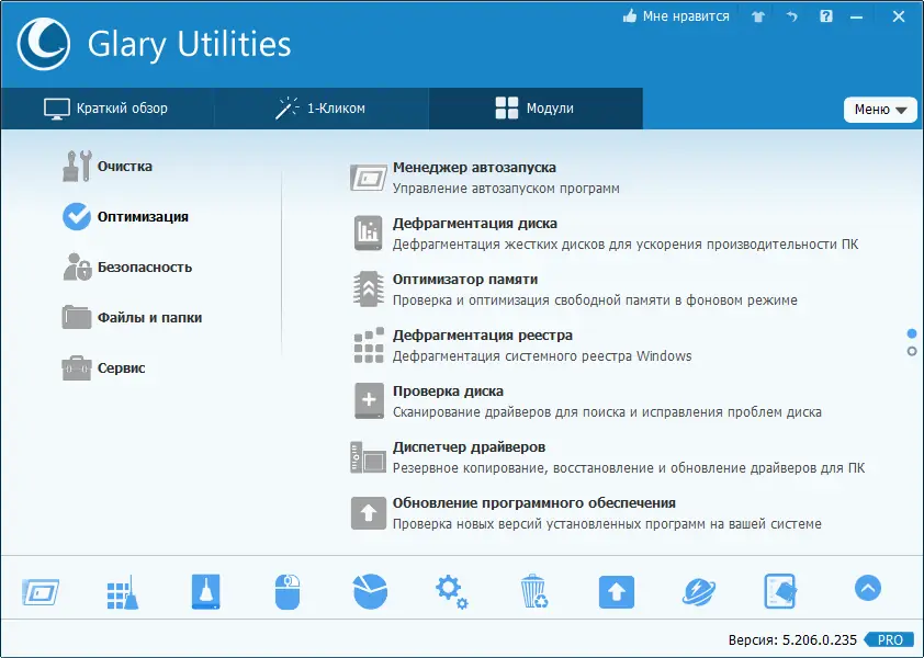 Glary Utilities объединяет в себе функции десятков системных инструментов, избавляя от необходимости устанавливать множество отдельных программ.