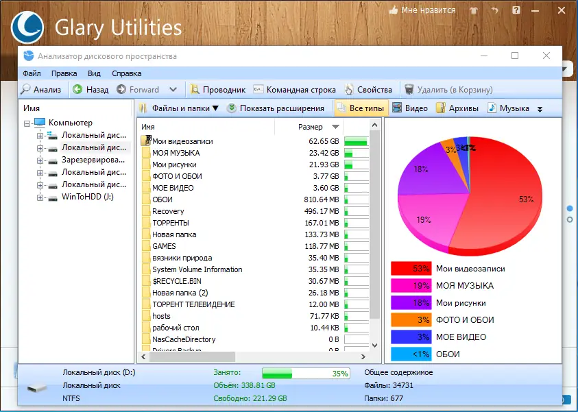 - Включает инструменты для дефрагментации дисков, анализа занятого пространства и поиска дубликатов файлов.