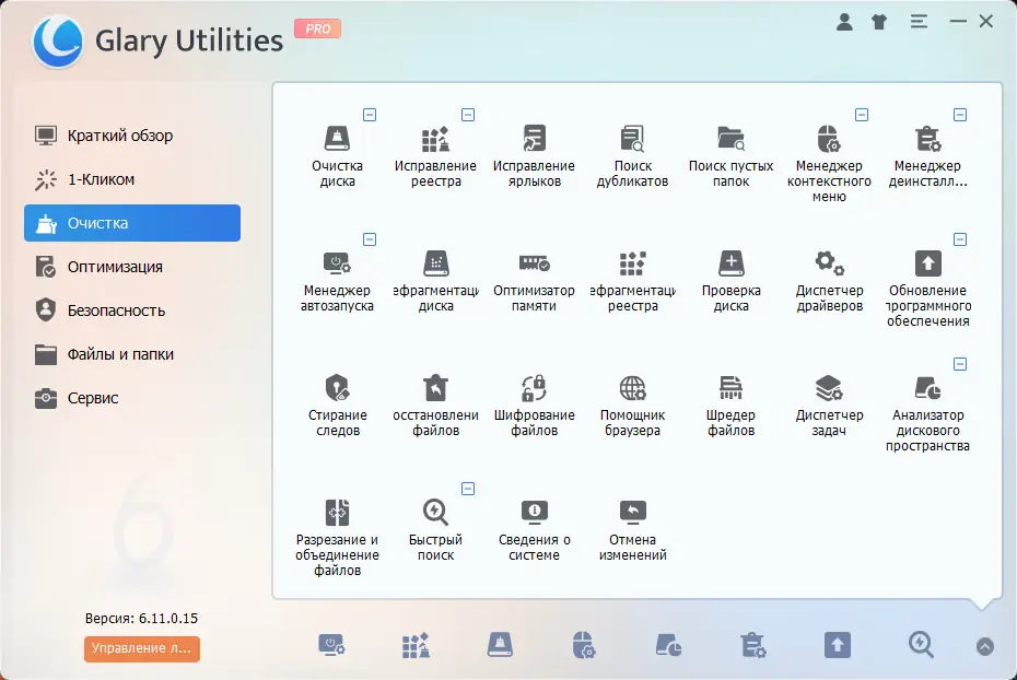 Glary Utilities представляет собой мощный пакет системных утилит, разработанный для глубокой настройки и обслуживания персонального компьютера. Программа помогает устранить системные сбои, ускорить запуск ОС, управлять установленными приложениями и поддерживать чистоту реестра. Благодаря интуитивному интерфейсу и широкому функционалу, она подходит как новичкам, так и опытным пользователям.