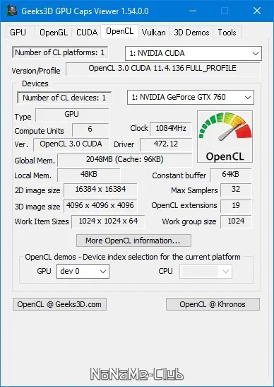 GPU Caps Viewer — это информационная утилита, предназначенная для детального анализа характеристик графических адаптеров, поддержки графических API и мониторинга параметров видеокарт в реальном времени. Программа предоставляет доступ к данным о возможностях GPU, включая уровень поддержки OpenGL, OpenCL и CUDA, а также позволяет отслеживать температуру, загрузку, тактовые частоты и обороты вентиляторов. Подходит как для обычных пользователей, так и для разработчиков, тестирующих совместимость приложений с различным графическим оборудованием.