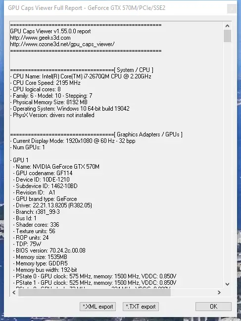- Полная информация о графических возможностях системы и поддерживаемых API.