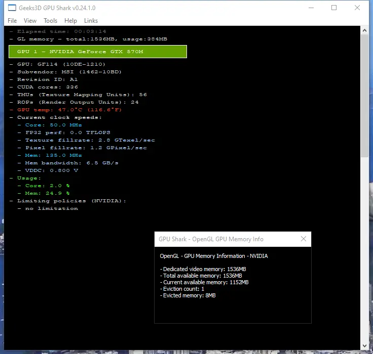 - Отдельное окно мониторинга памяти помогает отслеживать использование видеопамяти в реальном времени.