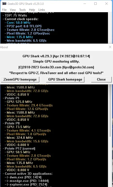 GPU Shark разработана как компактное решение для отслеживания производительности графического процессора. Утилита основана на библиотеке ZoomGPU и совместима с видеокартами NVIDIA GeForce и AMD Radeon, включая современные модели серии RX 7000. Она предоставляет доступ к широкому спектру данных, позволяя пользователю контролировать состояние системы без необходимости запуска ресурсоёмких приложений.
