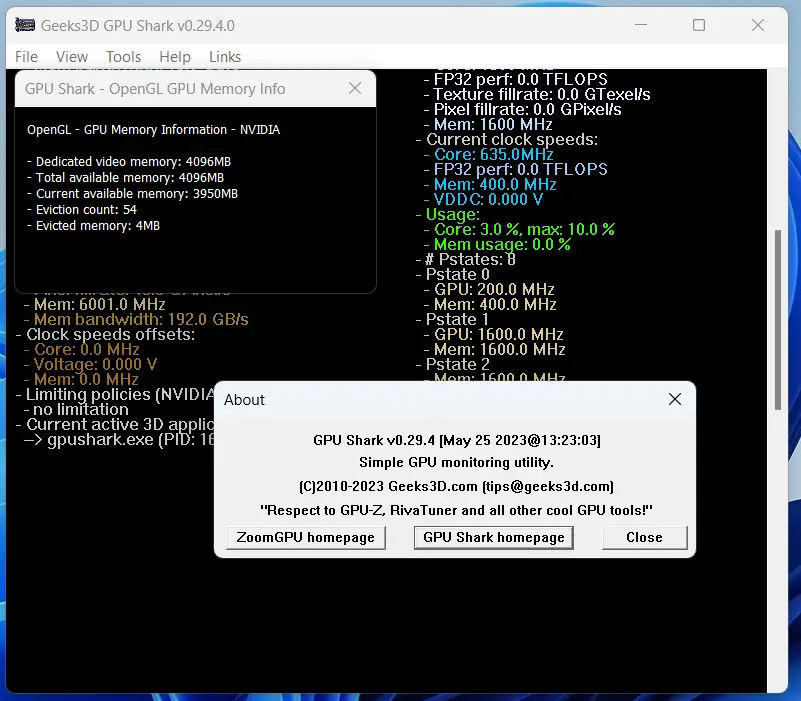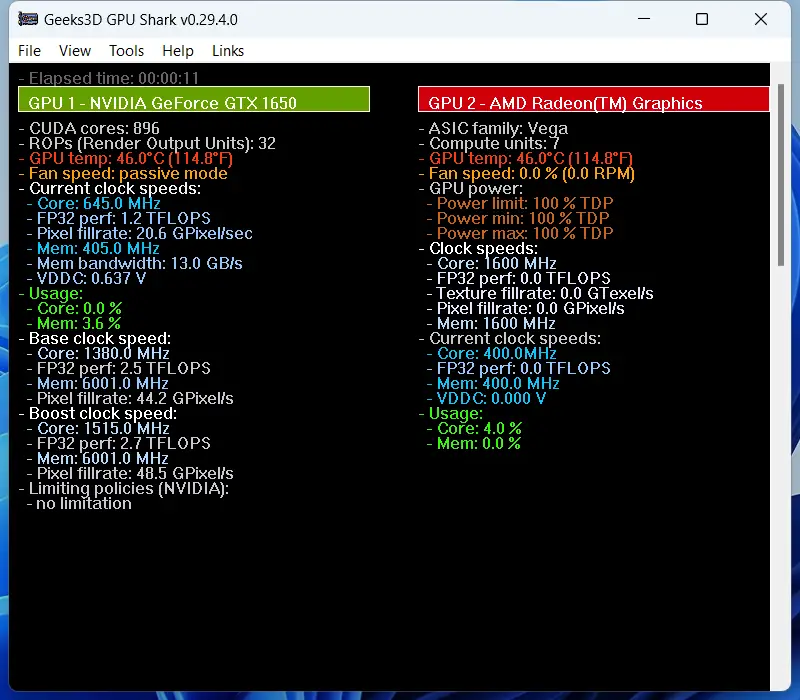 GPU Shark построена на основе библиотеки ZoomGPU, что обеспечивает высокую точность сбора данных с графических адаптеров. Утилита совместима с видеокартами на базе чипсетов NVIDIA GeForce и AMD Radeon, включая современные модели, такие как RTX 4060 Ti и RX 7600. Интерфейс разделён на два режима отображения: упрощённый и расширенный, позволяя пользователю выбрать оптимальный уровень детализации.