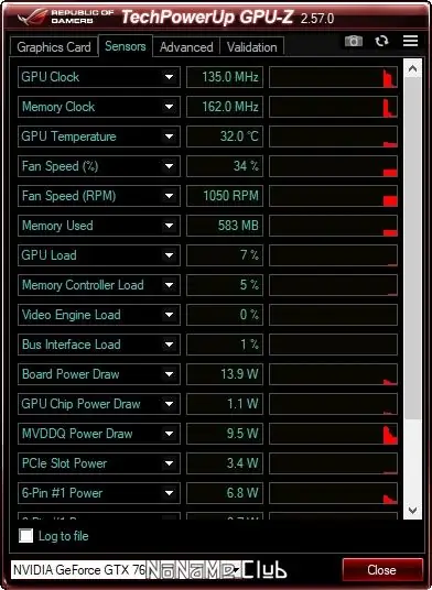 - Мониторинг температуры ядра, частот ядра и памяти, скорости вращения вентиляторов.