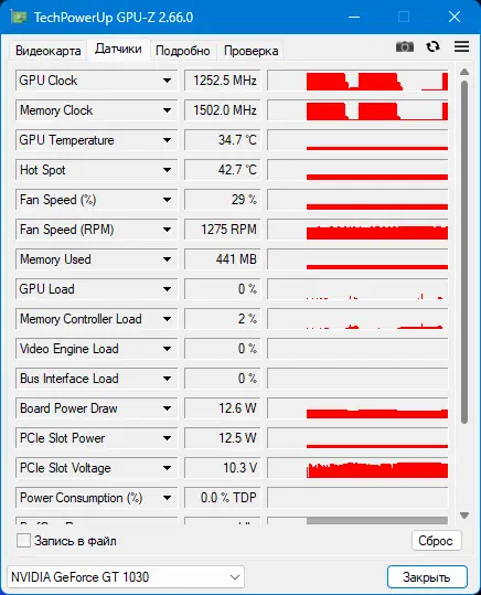 Запуск GPU-Z не требует установки — достаточно запустить исполняемый файл. После старта программа автоматически определяет подключённый графический адаптер и отображает его данные на вкладке «Graphics Card». На вкладке «Sensors» доступны показания датчиков: температура GPU, частоты ядра и памяти, использование видеопамяти и обороты вентилятора. Пользователь может включить запись показаний, экспортировать данные в файл или сделать скриншот с помощью встроенного инструмента. Для проверки обновлений предусмотрена опция в меню настроек, а русифицированный интерфейс упрощает восприятие информации.
