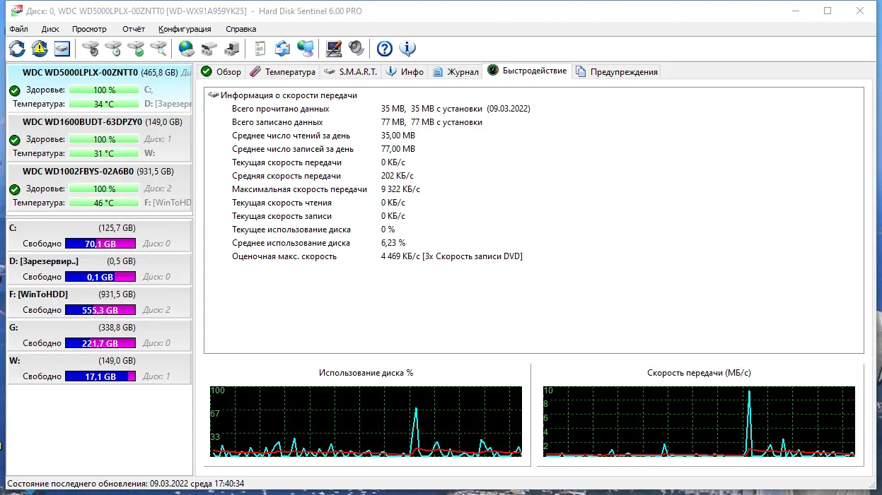 - Возможность измерения скорости передачи данных и оценки производительности диска