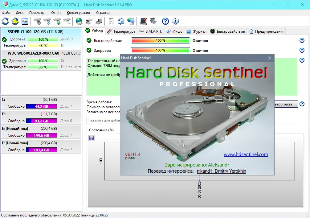Hard Disk Sentinel — это мощная утилита для мониторинга и диагностики состояния жёстких дисков и твердотельных накопителей. Программа отслеживает параметры S.M.A.R.T., температуру, производительность и общее здоровье накопителей в реальном времени. Благодаря фоновому режиму работы и своевременным оповещениям, она помогает предотвратить потерю данных и планировать замену изношенных устройств.