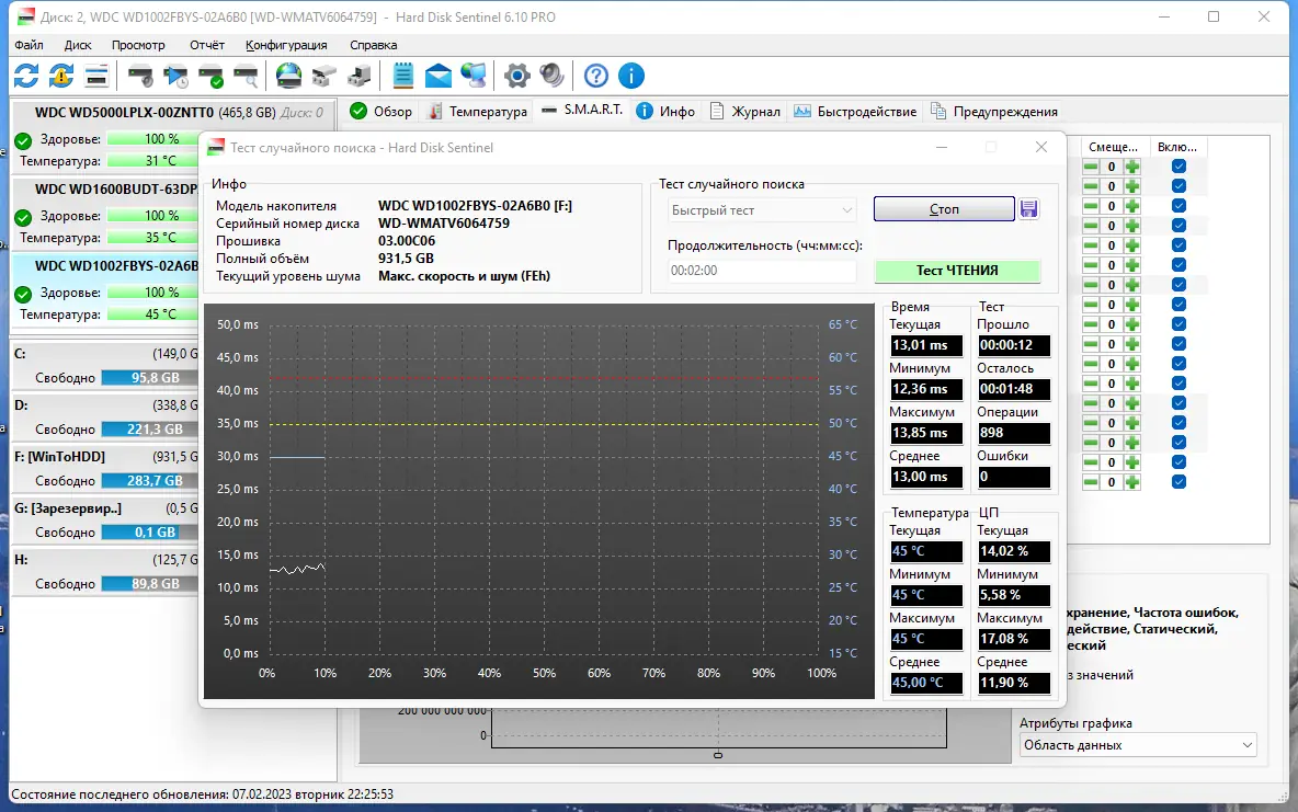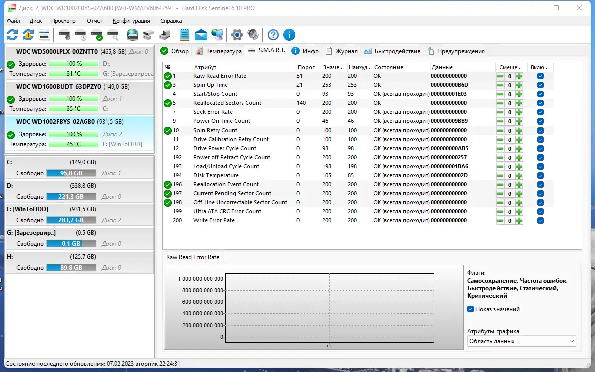 - Подробная статистика по каждому накопителю, включая время наработки и количество ошибок