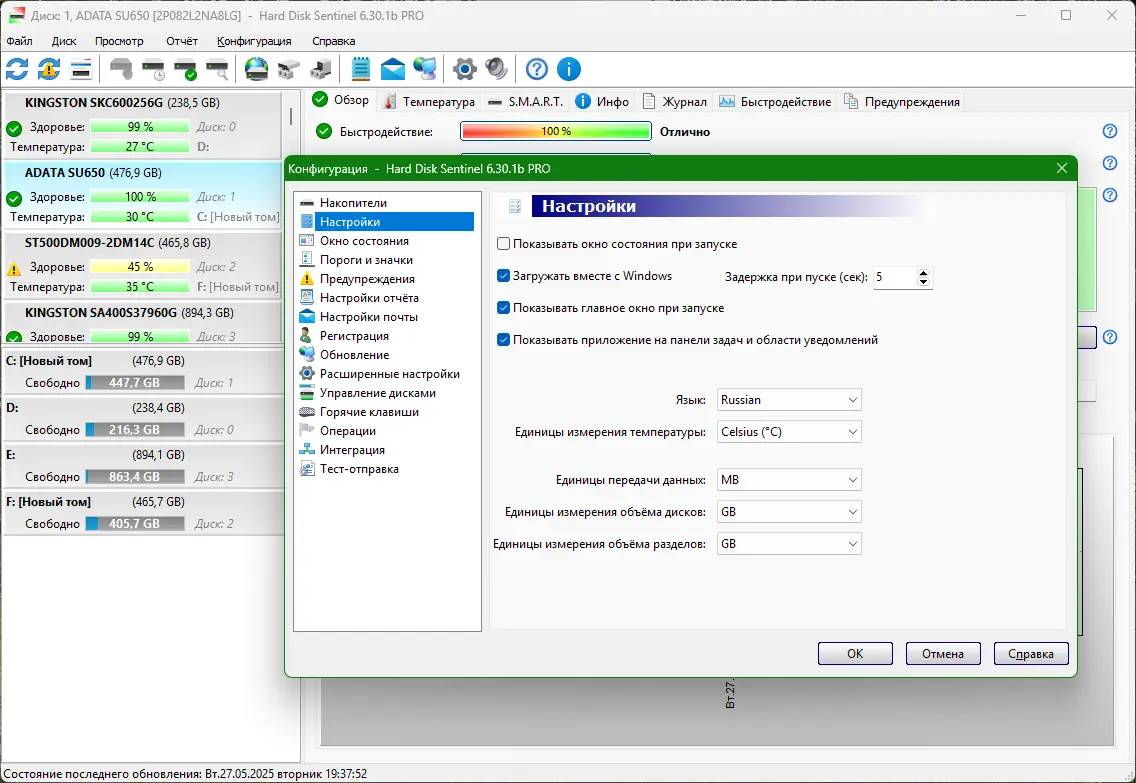 - Высокая точность мониторинга благодаря поддержке S.M.A.R.T. и реальному времени