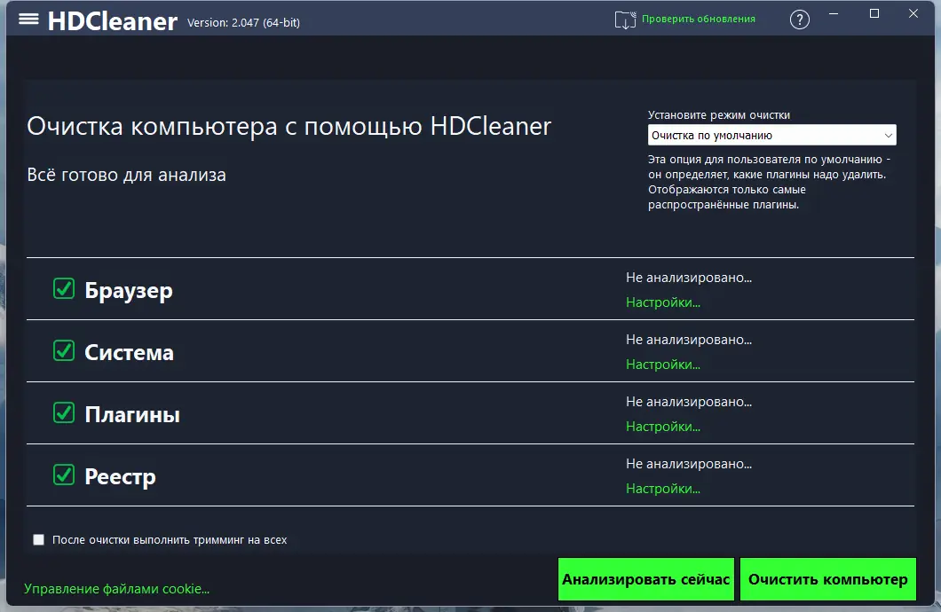 HDCleaner — это мощная утилита для очистки компьютера, разработанная Kurt Zimmermann, сочетающая в себе широкий набор инструментов для оптимизации системы, удаления мусора, дефрагментации дисков и повышения общей производительности. Программа поддерживает как традиционные жесткие диски, так и современные SSD, обеспечивая безопасную и эффективную работу. Её интерфейс интуитивно понятен, а функционал охватывает все ключевые аспекты системной оптимизации.