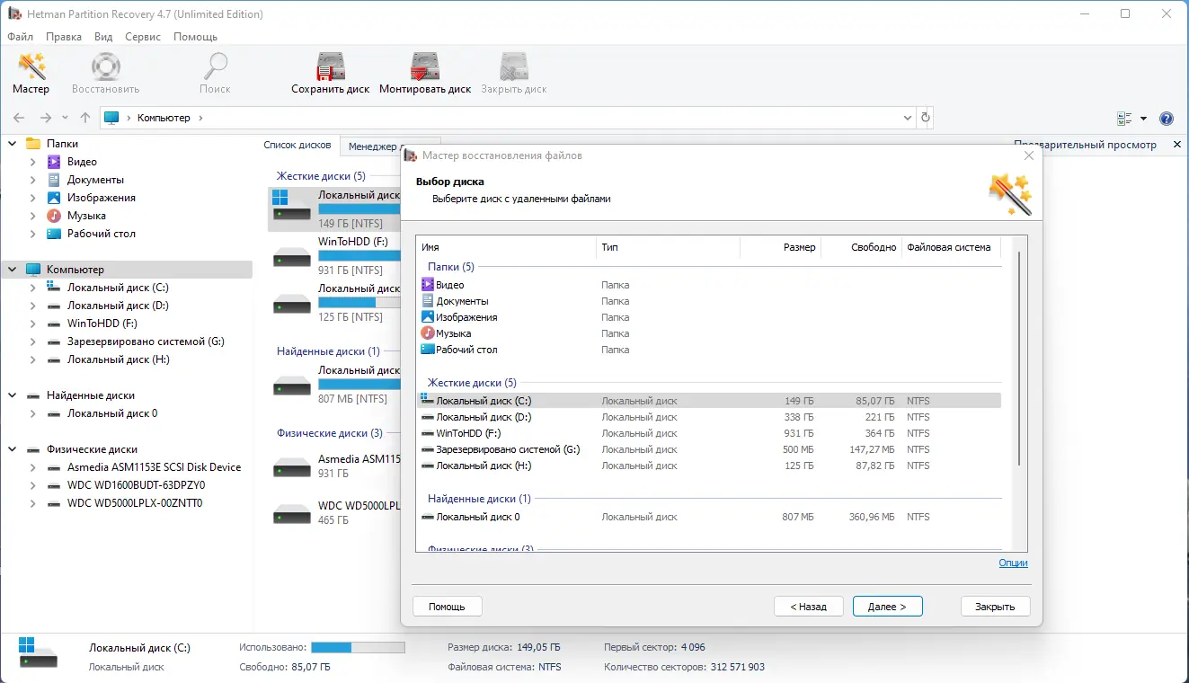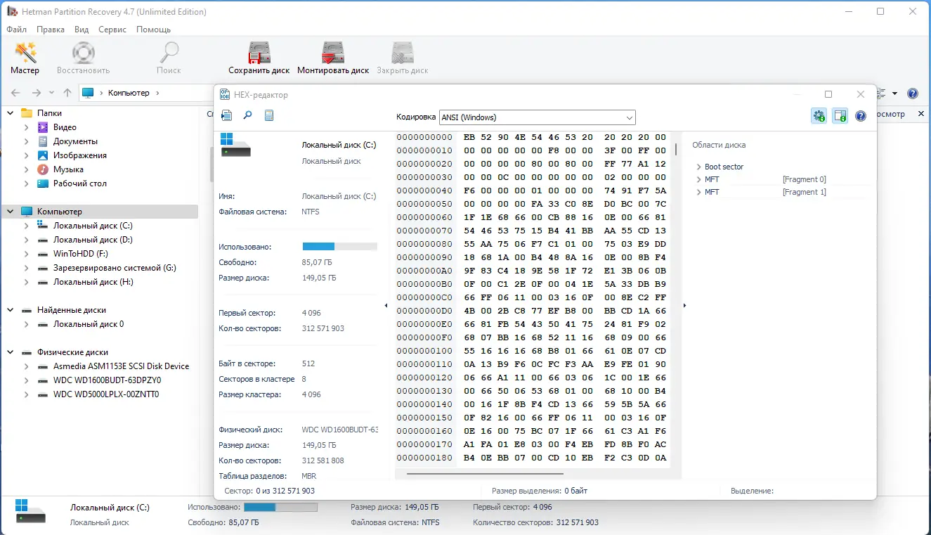 Hetman Partition Recovery предназначена для полного и точного восстановления информации с различных типов носителей, включая HDD, SSD, USB-накопители, карты памяти и виртуальные диски. Утилита поддерживает множество файловых систем, используемых в операционных системах Windows, macOS, Linux и Unix, что делает её универсальным решением для восстановления после случайного удаления, форматирования или повреждения диска. Программа анализирует секторы напрямую, не изменяя содержимое исходного носителя, обеспечивая безопасность и целостность оставшихся данных.